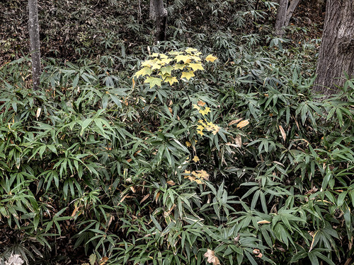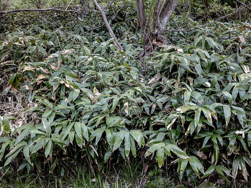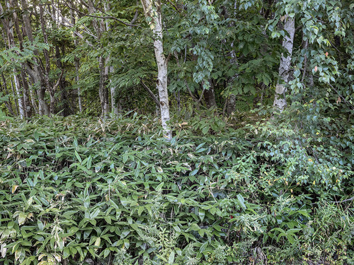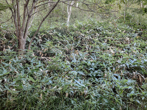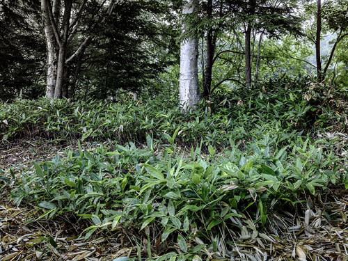 In Hokkaido, pushing through dense sasa (bamboo grass) thickets is referred to as “kogu” (to row or paddle). This expression is hard to fully comprehend unless one has actually experienced navigating such dense vegetation. Especially the “nemagaridake” (a subspecies of dwarf bamboo), which bends like a bow from the root and tangles around the feet of those walking, obstructing their path. The struggle to advance is so intense that the term “kogu” feels apt and inevitable.