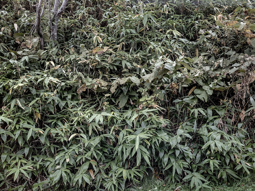 Once rooted, bamboo is extremely difficult to remove, obstructing the expansion of farms and settlements—thus, often called a “natural wall.” The shapes etched in light symbolize the tenacity of nature and its overwhelming presence that envelops human activity.